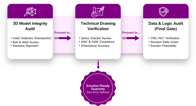 Standard Alignment: We ensure the model adheres to your specific shop preferences, material grades, and connection logic.